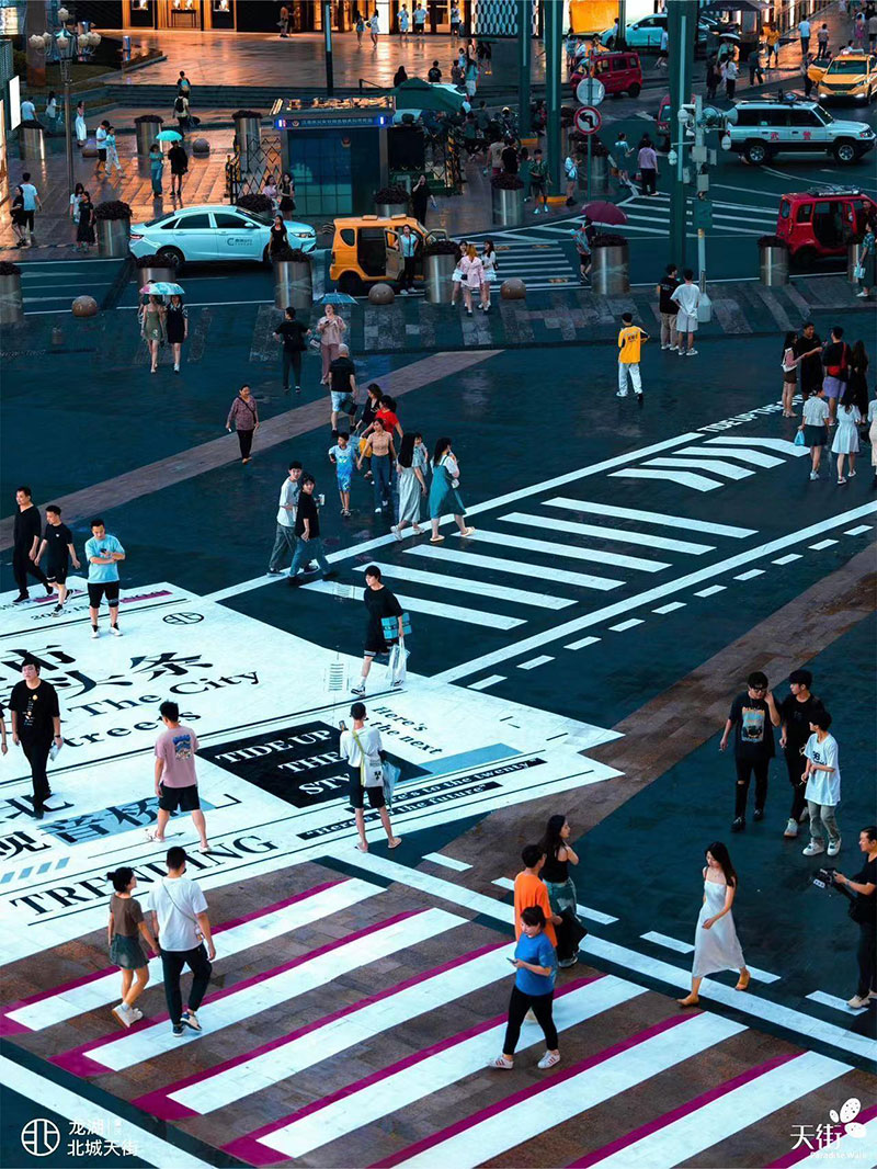 無界之行潮北斑馬線3.0;對話城市脈絡(luò),更新迭代城市青年時尚力量。龍湖重慶北城天街·夏日企劃重慶觀音橋的網(wǎng)紅斑馬線,高街頭條,重塑城市潮流態(tài)度。